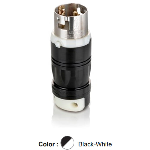 Leviton CS8165C, Black & White Locking Plug, Industrial Grade, 3-Phase, 50 Amp, 480V AC, Non-NEMA, 3-Pole, 4-Wire, Grounding, California Style(CS), Black/White