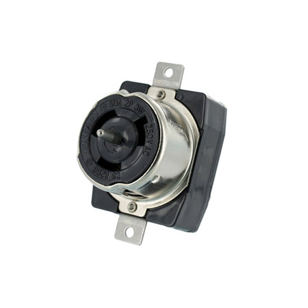 Leviton CS8269, Black & White Single Locking Single Flush Mount Receptacle, Industrial Grade, 50 Amp, 250V AC, Non-NEMA, 2-Pole, 3-Wire, Grounding, California Style(CS), Black