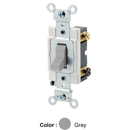 Leviton CSB4-20G, Standard 4-Way AC Quiet Toggle Switch, Commercial Specification Grade, 20A 120/277V AC, Grounding, Back and Side Wired, Gray