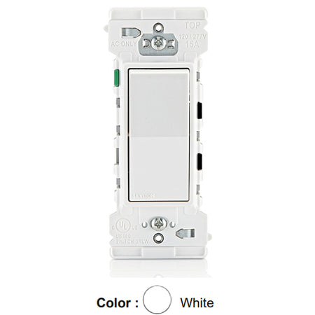 Leviton E5601-W, Lever Edge Single Pole AC Quiet Rocker Switch, Residential Grade, 15 Amp, 120/277 Volt, Self-Grounding, White, 2 Packs