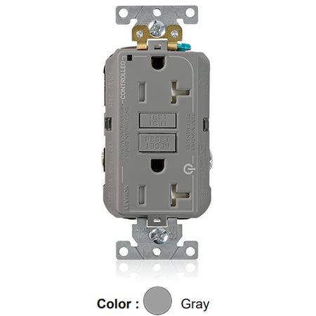 Leviton G5362-2TG, SmartlockPro Two Marked Controlled Self-Test GFCI Duplex Receptacle, LED Power Indication, Tamper-Resistant, Extra Heavy-Duty Industrial Specification Grade, 20A 125V, NEMA 5-20R, 2-Pole, 3-Wire, Gray