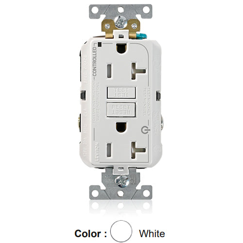 Leviton G5362-2TW, SmartlockPro Two Marked Controlled Self-Test GFCI Duplex Receptacle, LED Power Indication, Tamper-Resistant, Extra Heavy-Duty Industrial Specification Grade, 20A 125V, NEMA 5-20R, 2-Pole, 3-Wire, White