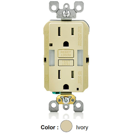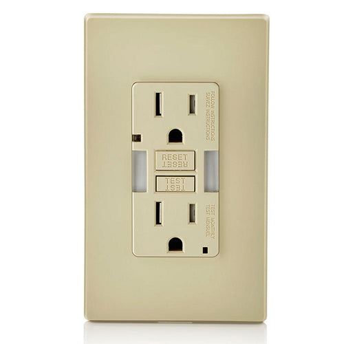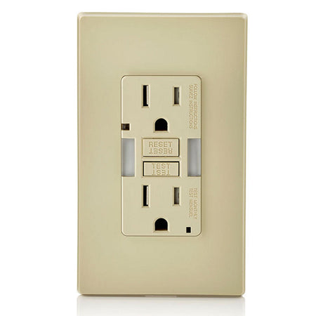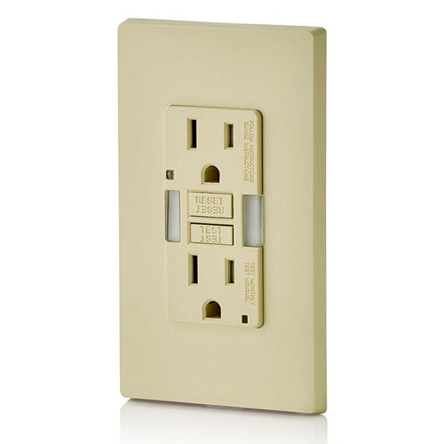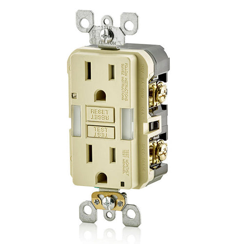 Leviton GFNL1-I, SmartlockPro Self-Test Slim GFCI Receptacle with Indicator Light, Automatic ON/OFF Sensor LED Guide Light and Tamper-Resistant, 20 Amp Feed-Through, 15A 125V, NEMA 5-15R, 2-Pole, 3-Wire, Self-Grounding, Ivory