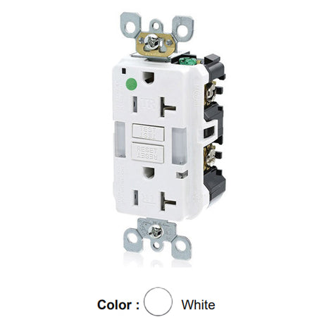 Leviton GFNL2-HGW, SmartlockPro Self-Test GFCI Duplex Receptacle with Indicator Light, Heavy-Duty Hospital Grade, Guide Light and Tamper-Resistant, 20 Amp Feed-Through, 20A 125V, NEMA 5-20R, 2-Pole, 3-Wire, Self-Grounding, White