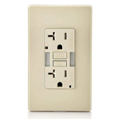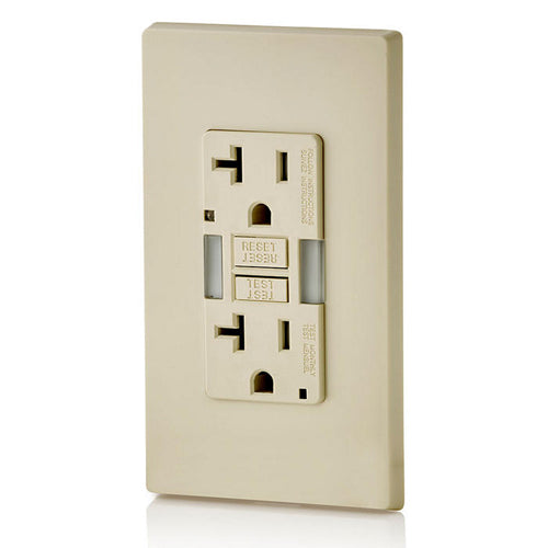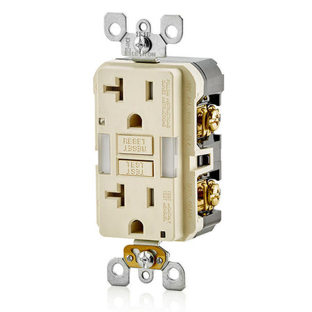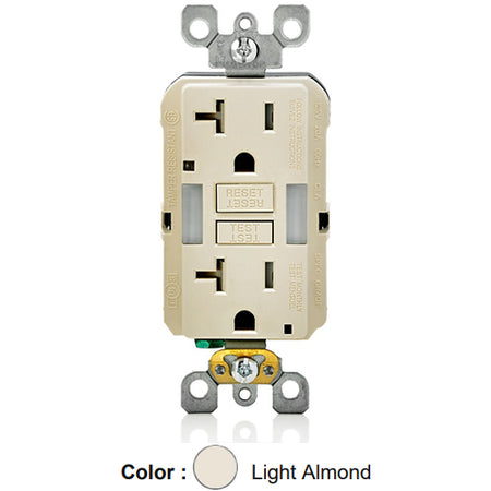 Leviton GFNL2-T, SmartlockPro Self-Test Slim GFCI Receptacle with Indicator Light, Automatic ON/OFF Sensor LED Guide Light and Tamper-Resistant, 20 Amp Feed-Through, 20A 125V, NEMA 5-20R, 2-Pole, 3-Wire, Self-Grounding, Light Almond