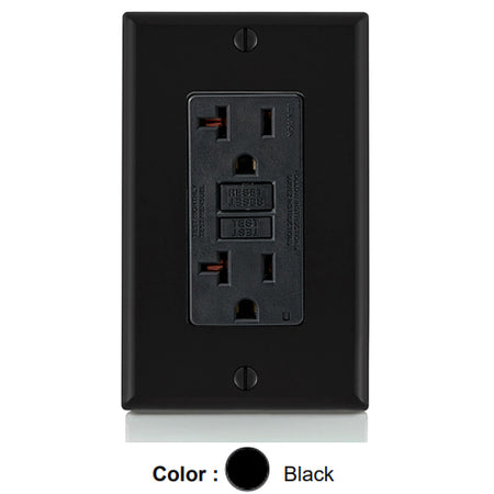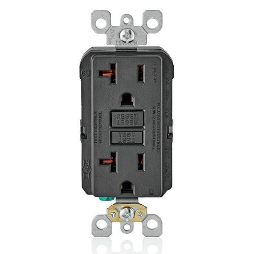 Leviton GFNT2-E, SmartlockPro Slim Self-Test GFCI Duplex Receptacle, LED Indicator Light, 20 Amp Feed-Through, 20A 125V, NEMA 5-20R, Back & Side Wired, Self-Grounding, Black