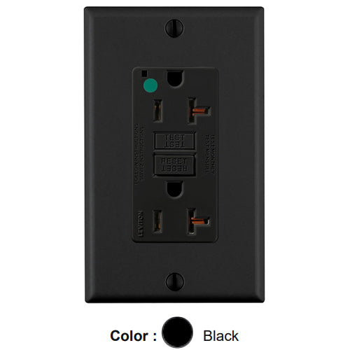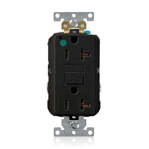 Leviton GFNT2-HGE, SmartlockPro Self-Test GFCI Duplex Receptacle, LED Power Indication, Extra Heavy-Duty Hospital Grade, Wallplate Included, 20A 125V, NEMA 5-20R, 2-Pole, 3-Wire, Self-Grounding, Black
