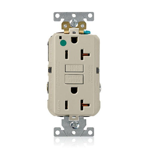 Leviton GFNT2-HGI, SmartlockPro Self-Test GFCI Duplex Receptacle, LED Power Indication, Extra Heavy-Duty Hospital Grade, Wallplate Included, 20A 125V, NEMA 5-20R, 2-Pole, 3-Wire, Self-Grounding, Ivory