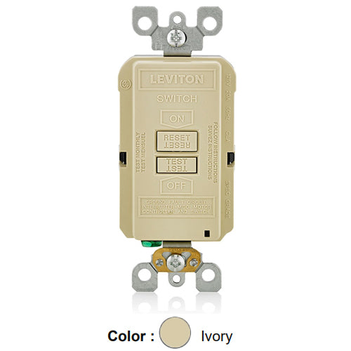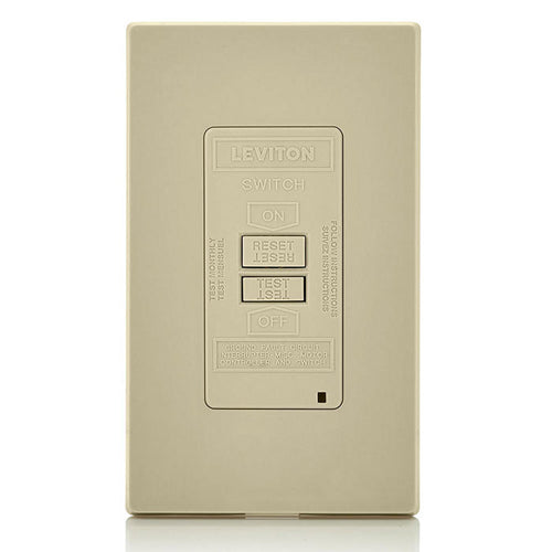 Leviton GFRBF-I, SmartlockPro Slim Blank Face Self-Test GFCI Receptacle, LED Indicator Light, 20 Amp Feed-Through, 125 Volt, Back and Side Wired, Self-Grounding, Ivory