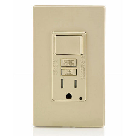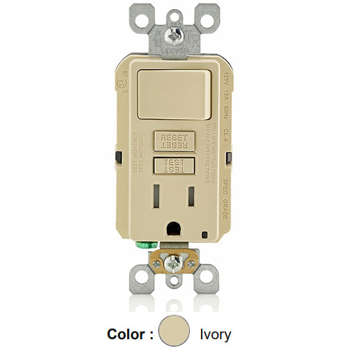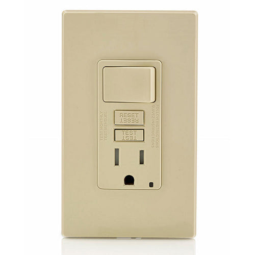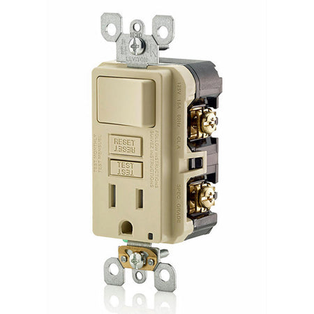 Leviton GFSW1-I, SmartlockPro Slim GFCI Combination Tamper-Resistant Receptacle with Switch, LED Indicator Ligh, 15 Amp, 125 Volt, Back and Side Wired, Self-Grounding Clip Included, Ivory