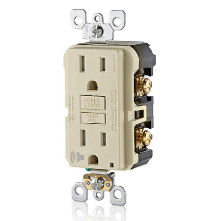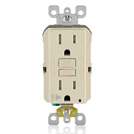 Leviton GFTA1-T, SmartlockPro Tamper-Resistant Self-Test GFCI Duplex Receptacle, Audible Trip Alert & LED Indicator Light, 20 Amp Feed-Through, 15A 125V, NEMA 5-15R, Back and Side Wired, Self-Grounding, Light Almond