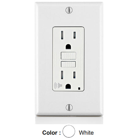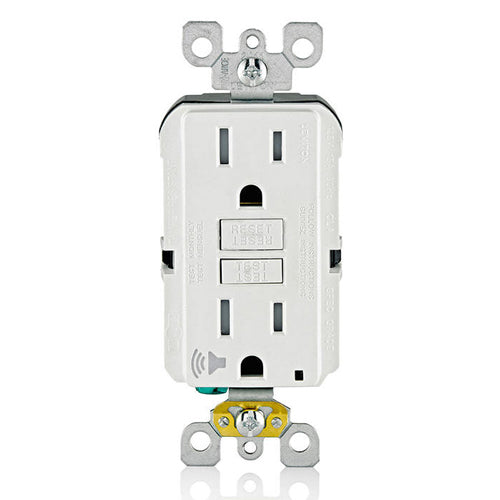 Leviton GFTA1-W, SmartlockPro Tamper-Resistant Self-Test GFCI Duplex Receptacle, Audible Trip Alert & LED Indicator Light, 20 Amp Feed-Through, 15A 125V, NEMA 5-15R, Back and Side Wired, Self-Grounding, White