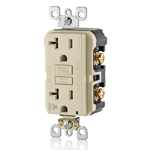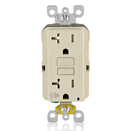 Leviton GFTA2-T, SmartlockPro Tamper-Resistant Self-Test GFCI Duplex Receptacle, Audible Trip Alert & LED Indicator Light, 20 Amp Feed-Through, 20A 125V, NEMA 5-20R, Back and Side Wired, Self-Grounding, Light Almond