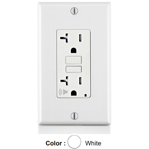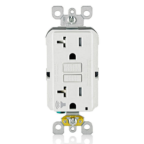 Leviton GFTA2-W, SmartlockPro Tamper-Resistant Self-Test GFCI Duplex Receptacle, Audible Trip Alert & LED Indicator Light, 20 Amp Feed-Through, 20A 125V, NEMA 5-20R, Back and Side Wired, Self-Grounding, White