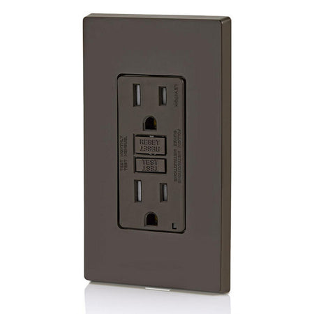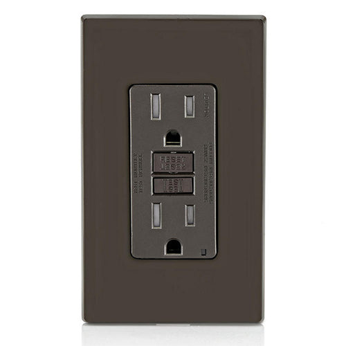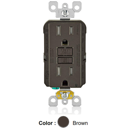 Leviton GFTR1, SmartlockPro Tamper-Resistant Slim Self-Test GFCI Duplex Receptacle, LED Indicator Light, 20 Amp Feed-Through, 15A 125V, NEMA 5-15R, Back & Side Wired, Self-Grounding, Brown