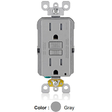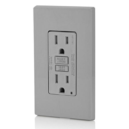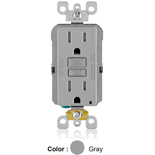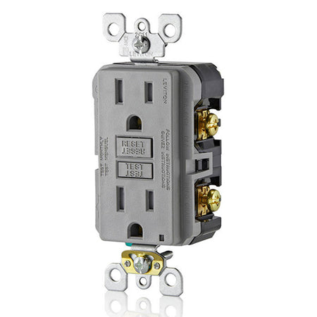 Leviton GFTR1-GY, SmartlockPro Tamper-Resistant Slim Self-Test GFCI Duplex Receptacle, LED Indicator Light, 20 Amp Feed-Through, 15A 125V, NEMA 5-15R, Back & Side Wired, Self-Grounding, Gray