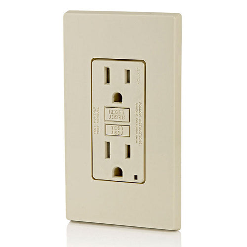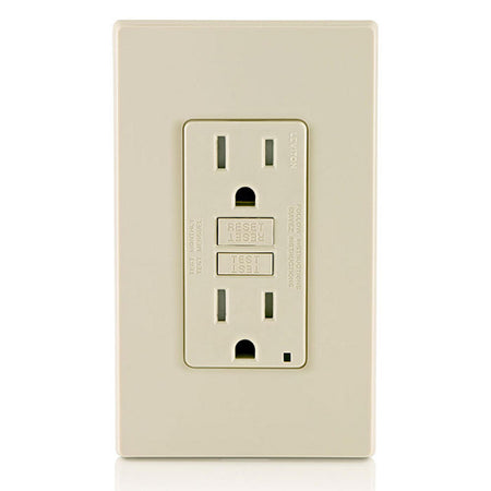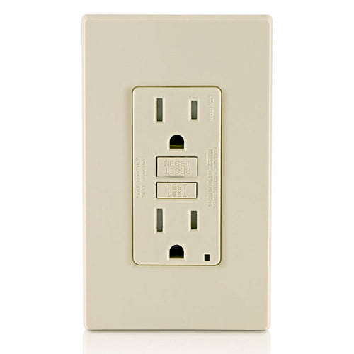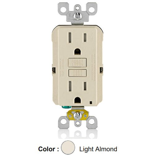 Leviton GFTR1-T, SmartlockPro Tamper-Resistant Slim Self-Test GFCI Duplex Receptacle, LED Indicator Light, 20 Amp Feed-Through, 15A 125V, NEMA 5-15R, Back & Side Wired, Self-Grounding, Light Almond