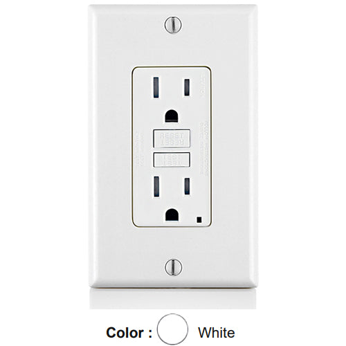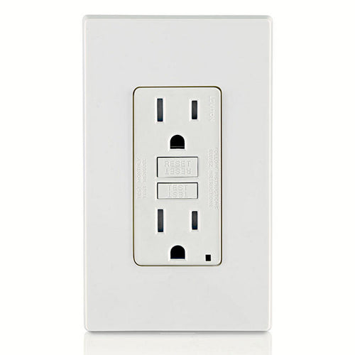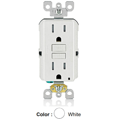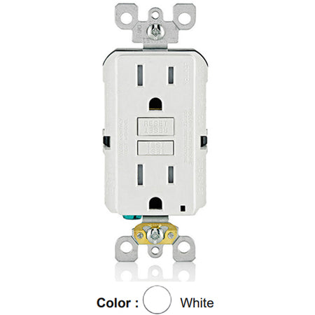 Leviton GFTR1-W, SmartlockPro Tamper-Resistant Slim Self-Test GFCI Duplex Receptacle, LED Indicator Light, 20 Amp Feed-Through, 15A 125V, NEMA 5-15R, Back & Side Wired, Self-Grounding, White