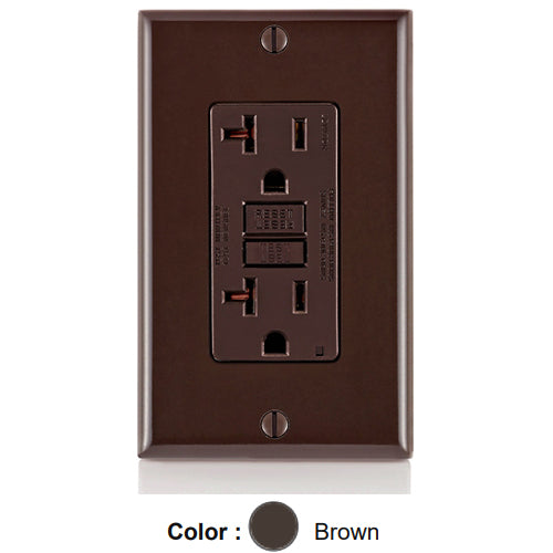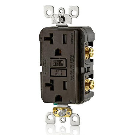 Leviton GFTR2, SmartlockPro Tamper-Resistant Slim Self-Test GFCI Duplex Receptacle, LED Indicator Light, 20 Amp Feed-Through, 20A 125V, NEMA 5-20R, Back & Side Wired, Self-Grounding, Brown