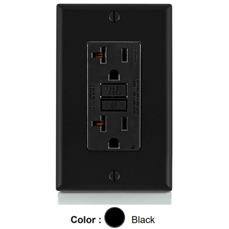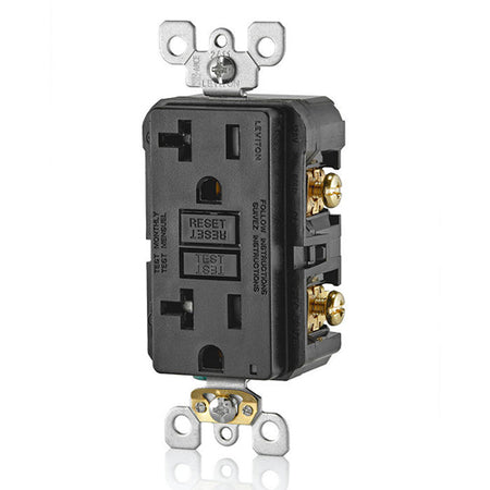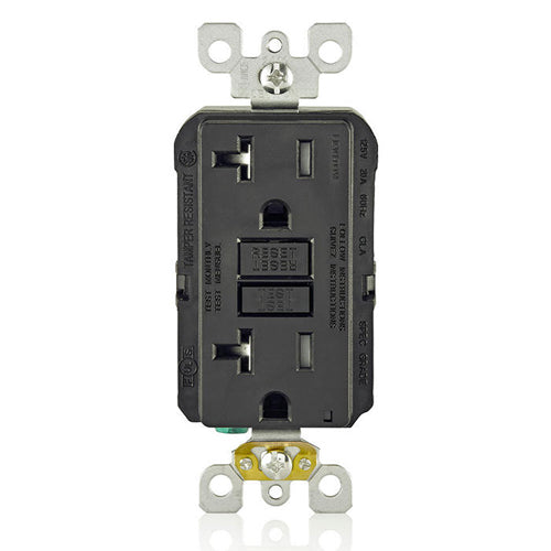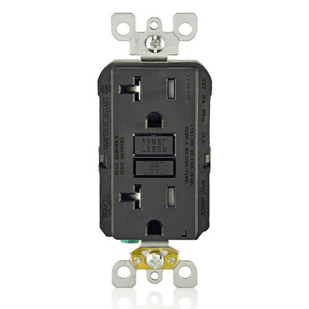 Leviton GFTR2-E, SmartlockPro Tamper-Resistant Slim Self-Test GFCI Duplex Receptacle, LED Indicator Light, 20 Amp Feed-Through, 20A 125V, NEMA 5-20R, Back & Side Wired, Self-Grounding, Black
