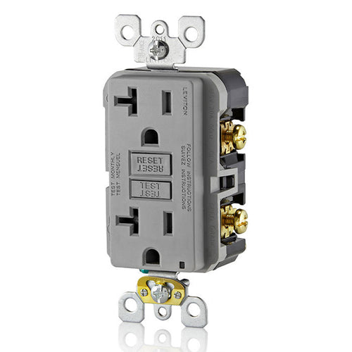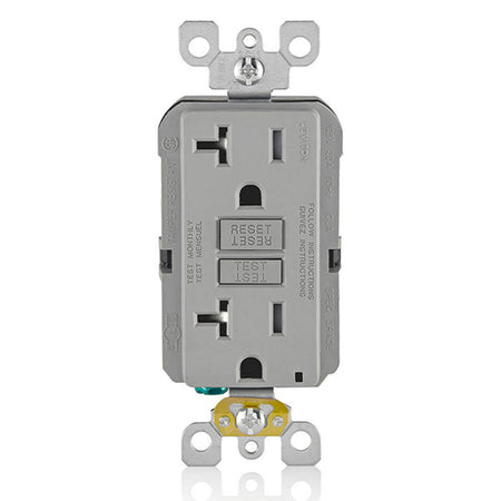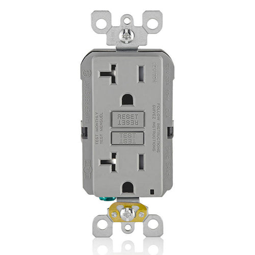 Leviton GFTR2-GY, SmartlockPro Tamper-Resistant Slim Self-Test GFCI Duplex Receptacle, LED Indicator Light, 20 Amp Feed-Through, 20A 125V, NEMA 5-20R, Back & Side Wired, Self-Grounding, Gray