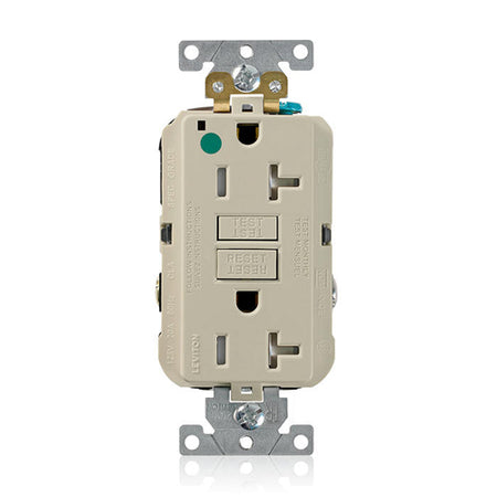 Leviton GFTR2-HGI, SmartlockPro Self-Test GFCI Duplex Receptacle, Tamper-Resistant, LED Power Indication, Extra Heavy-Duty Hospital Grade, Wallplate Included, 20A 125V, NEMA 5-20R, 2-Pole, 3-Wire, Self-Grounding, Ivory
