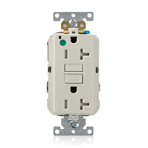 Leviton GFTR2-HGT, SmartlockPro Self-Test GFCI Duplex Receptacle, Tamper-Resistant, LED Power Indication, Extra Heavy-Duty Hospital Grade, Wallplate Included, 20A 125V, NEMA 5-20R, 2-Pole, 3-Wire, Self-Grounding, Light Almond