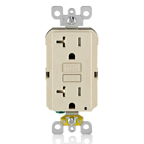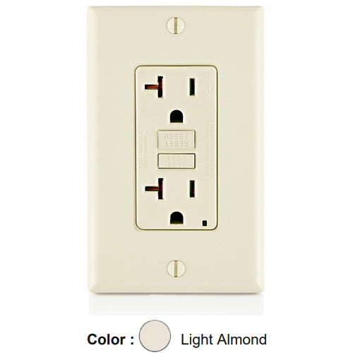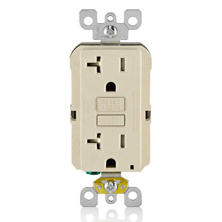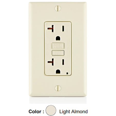 Leviton GFTR2-T, SmartlockPro Tamper-Resistant Slim Self-Test GFCI Duplex Receptacle, LED Indicator Light, 20 Amp Feed-Through, 20A 125V, NEMA 5-20R, Back & Side Wired, Self-Grounding, Light Almond