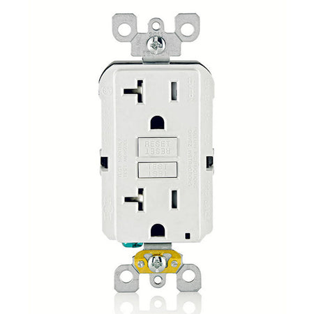 Leviton GFTR2-W, SmartlockPro Tamper-Resistant Slim Self-Test GFCI Duplex Receptacle, LED Indicator Light, 20 Amp Feed-Through, 20A 125V, NEMA 5-20R, Back & Side Wired, Self-Grounding, White