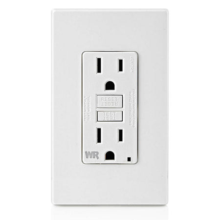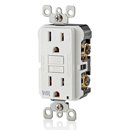 Leviton GFWR1-W, SmartlockPro Slim Self-Test GFCI Duplex Receptacle, Weather-Resistant, LED Indicator Light, 20 Amp Feed-Through, 15A 125V, NEMA 5-15R, Back & Side Wired, White
