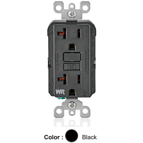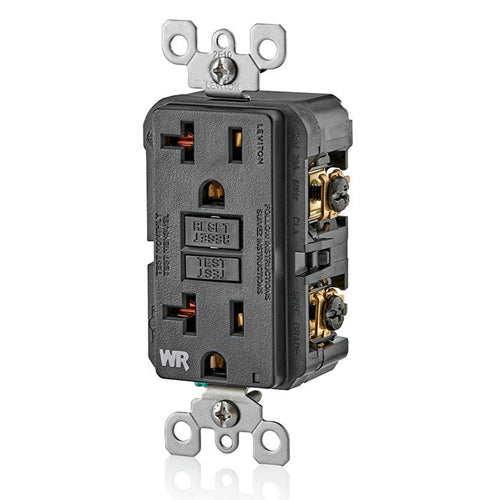 Leviton GFWR2-E, SmartlockPro Slim Self-Test GFCI Duplex Receptacle, Weather-Resistant, LED Indicator Light, 20 Amp Feed-Through, 20A 125V, NEMA 5-20R, Back & Side Wired, Black