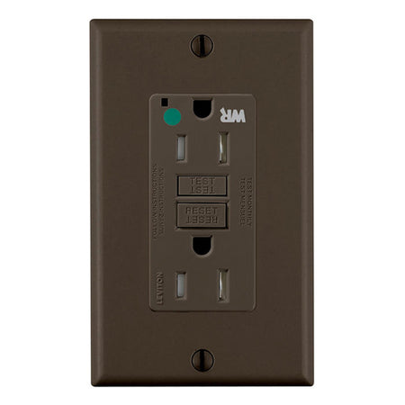 Leviton GFWT1-HG, SmartlockPro Self-Test GFCI Duplex Receptacle, Weather & Tamper-Resistant, LED Indicator Light, Extra Heavy-Duty Hospital Grade, Wallplate Included, 15A 125V, NEMA 5-15R, 2-Pole, 3-Wire, Self-Grounding, Brown