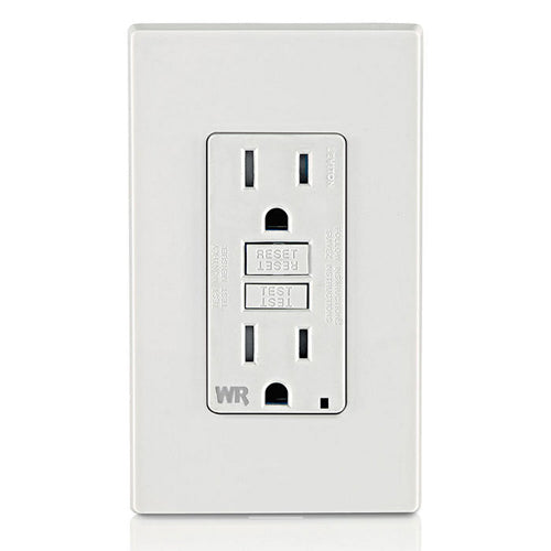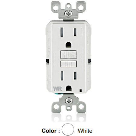 Leviton GFWT1-W, SmartlockPro Weather & Tamper-Resistant Slim Self-Test GFCI Duplex Receptacle, LED Indicator Light, 20 Amp Feed-Through, 15A 125V, NEMA 5-15R, Back & Side Wired, White