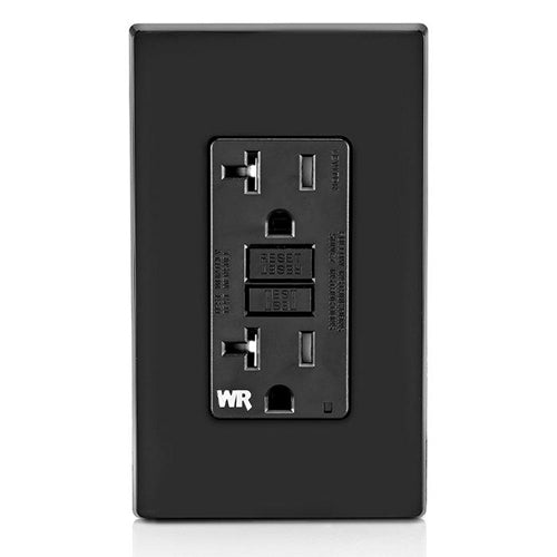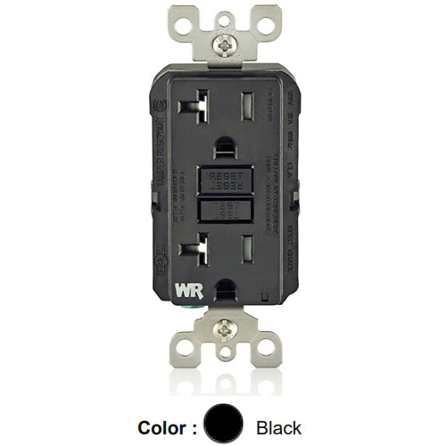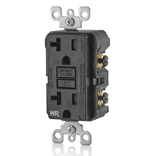 Leviton GFWT2-E, SmartlockPro Slim Self-Test GFCI Duplex Receptacle, Weather-Resistant, LED Indicator Light, 20 Amp Feed-Through, 20A 125V, NEMA 5-20R, Back & Side Wired, Black