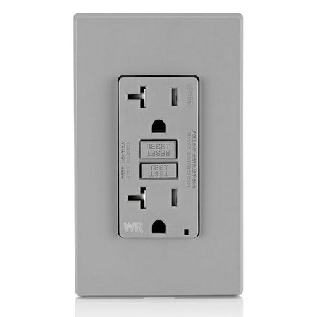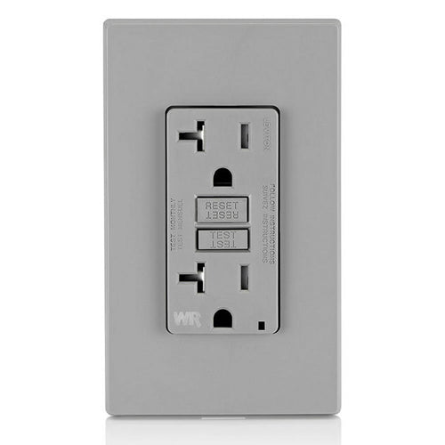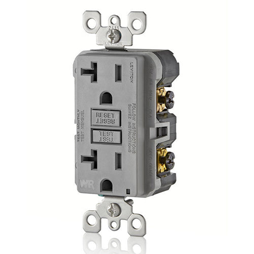 Leviton GFWT2-GY, SmartlockPro Slim Self-Test GFCI Duplex Receptacle, Weather-Resistant, LED Indicator Light, 20 Amp Feed-Through, 20A 125V, NEMA 5-20R, Back & Side Wired, Gray