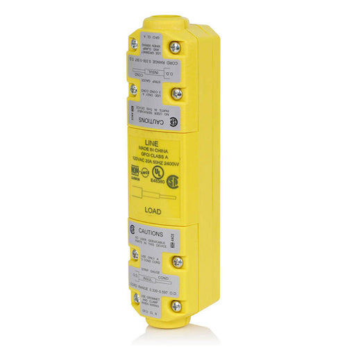 Leviton GSIM2, Self-Test Manual Reset User Attachable In-Line GFCI Plug (5-20P), 20 Amp, 120 VAC, Rainproof Design, Grounded, Yellow