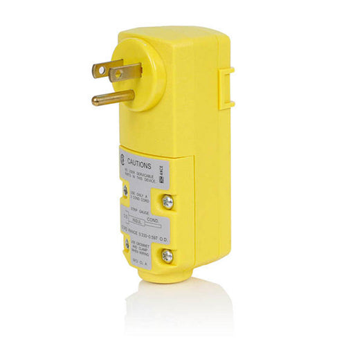 Leviton GSRM1, Self-Test Manual Reset User-Attachable Right Angle GFCI Plug (5-15P), 15 Amp, 120 VAC, Rainproof Design, Grounded, Yellow