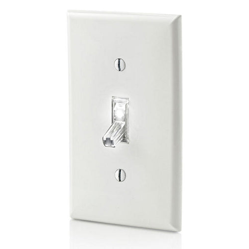 Leviton L1461-2C, 6000K LED Illuminated Single Pole AC Quiet Toggle Switch, Residential Grade, 15 Amp, 120 Volt, Grounding, Quickwire and Side Wired, Clear