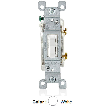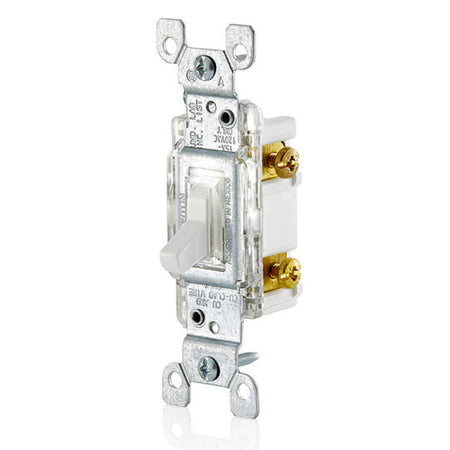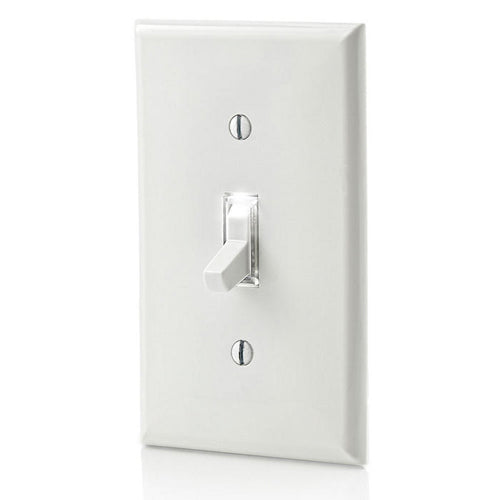 Leviton L1461-2W, 6000K LED Illuminated Single Pole AC Quiet Toggle Switch, Residential Grade, 15 Amp, 120 Volt, Grounding, Quickwire and Side Wired, White