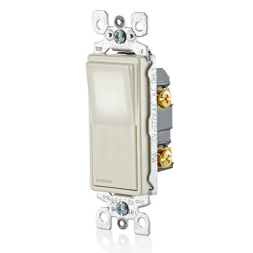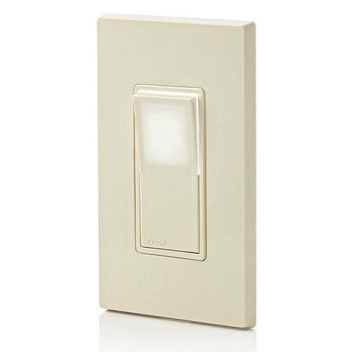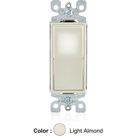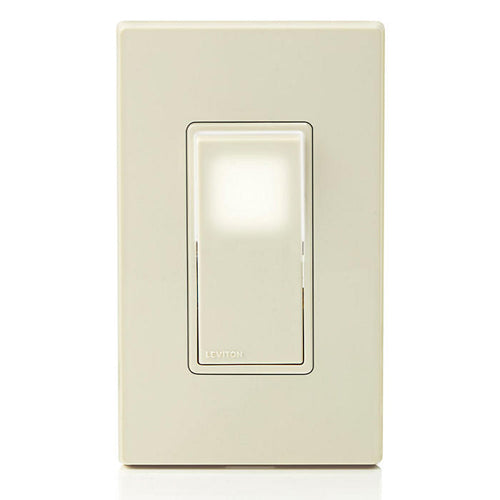 Leviton L5611-2T, Decora LED Illuminated Single Pole AC Quiet Rocker Switch, Residential Grade, 15 Amp, 120/277 Volt, Grounding, Light Almond