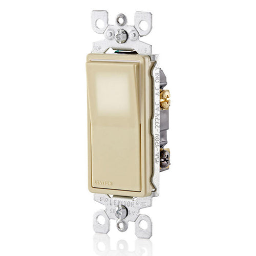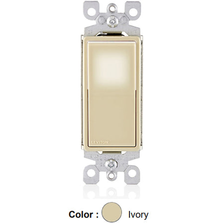 Leviton L5613-2I, Decora LED Illuminated 3-Way AC Quiet Rocker Switch, Residential Grade, 15 Amp, 120/277 Volt, Grounding, Ivory