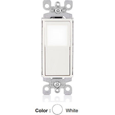 Leviton L5613-2W, Decora LED Illuminated 3-Way AC Quiet Rocker Switch, Residential Grade, 15 Amp, 120/277 Volt, Grounding, White