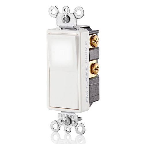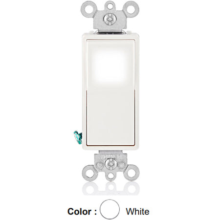 Leviton L5614-2W, Decora LED Illuminated 4-Way AC Quiet Rocker Switch, Residential Grade, 15 Amp, 120/277 Volt, Grounding, White