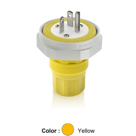 Leviton LNR80-4Y, Rhino-Hide Straight Blade Plug, Industrial Grade, 20A 250V, NEMA 6-20P, 2-Pole, 3-Wire, Grounding, Yellow