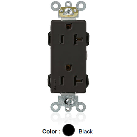 Leviton M1636-E, Lev-Lok Decora Plus Straight Blade Duplex Receptacle, Heavy-Duty Industrial Specification Grade, Smooth Face, 20A 125V, NEMA 5-20R, 2-Pole, 3-Wire, Modular Terminals, Black