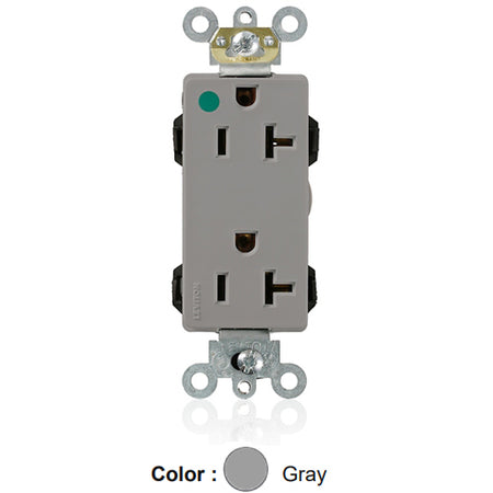 Leviton M1636-HGG, Lev-Lok Decora Plus Straight Blade Duplex Receptacle, Extra Heavy-Duty Hospital Grade, Smooth Face, 20A 125V, NEMA 5-20R, 2-Pole, 3-Wire, Modular Terminals, Gray