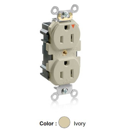 Leviton M5262-IGI, Lev-Lok Straight Blade Duplex Receptacle, Heavy-Duty Industrial Specification Grade, Smooth Face, Isolated Ground, 15A 125V, NEMA 5-15R, 2-Pole, 3-Wire, Modular Terminals, Ivory