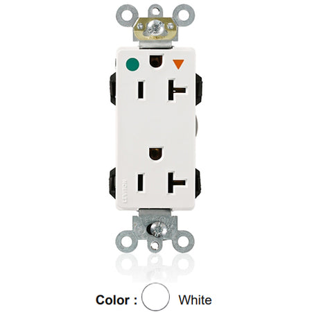 Leviton MD830-IGW, Lev-Lok Decora Plus Straight Blade Duplex Receptacle, Heavy-Duty Hospital Grade, Isolated Ground, Smooth Face, 20A 125V, NEMA 5-20R, 2-Pole, 3-Wire, Modular Terminals, White