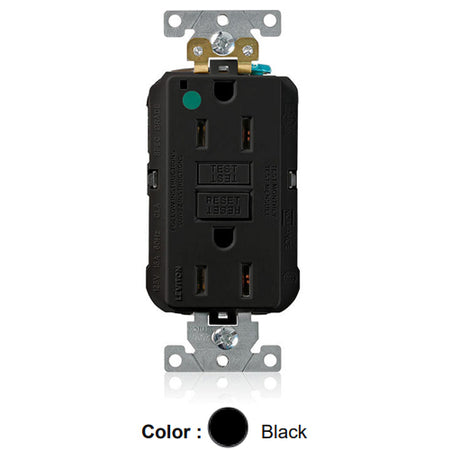 Leviton MGFN1-HGE, Lev-Lok SmartlockPro Self-Test GFCI Duplex Receptacle, Power Indication, Extra Heavy-Duty Hospital Grade, 15A 125V, NEMA 5-15R, 2-Pole, 3-Wire, Self-Grounding, Black