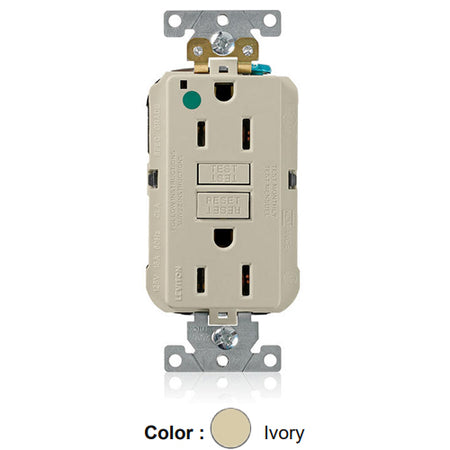Leviton MGFN1-HGI, Lev-Lok SmartlockPro Self-Test GFCI Duplex Receptacle, Power Indication, Extra Heavy-Duty Hospital Grade, 15A 125V, NEMA 5-15R, 2-Pole, 3-Wire, Self-Grounding, Ivory